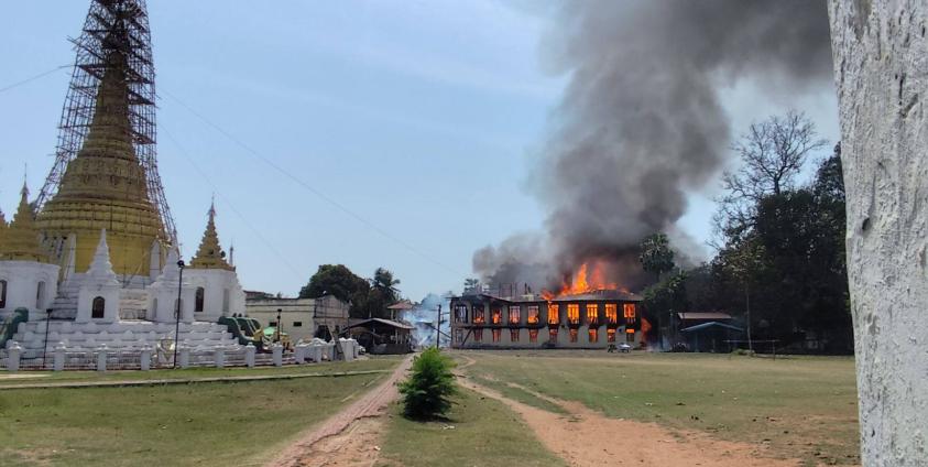 On the morning of March 20, a junta fighter jet bombed a monastery sheltering internally displaced people (IDPs) in Katha Township, Sagaing Region, killing and injuring dozens of monks and displaced civilians.