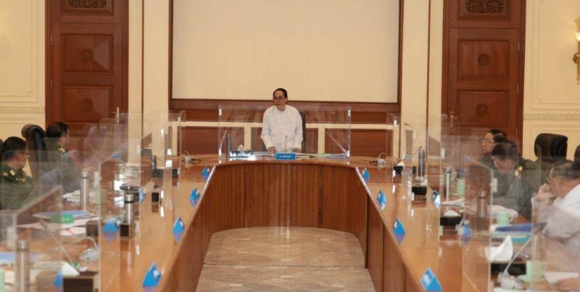 The meeting was held yesterday morning at the meeting hall of the State Administration Council Chairman’s Office in Naypyidaw. It was attended by Acting President U Myint Swe, Speaker of the Pyithu Hluttaw U T Khun Myat, Military Council Chairman Senior General Min Aung Hlaing, Vice Chairman Vice Senior General Soe Win, Minister of Defense General Mya Tun Oo, Minister of Home Affairs Lieutenant General Soe Htut, Minister of Foreign Affairs U Wunna Maung Lwin and Minister of Border Affairs Lieutenant General Tun Tun Naung.