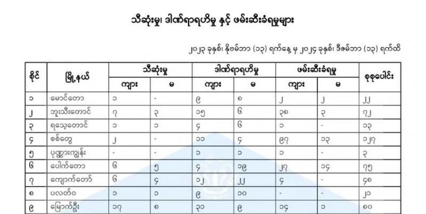 According to HDCO, during the period from November 13th to November 30th, Junta detained 81 civilians from various townships in Rakhine State. Moreover between December 1st and December 31st, 172 civilians were arrested, and an additional 24 were detained from January 1st to 13th of this year.