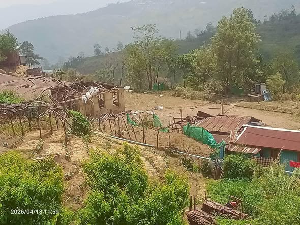 Tlangzar Village on the Falam–Hakha Road in Falam Township, Chin State, was struck by two junta airstrikes on April 18, damaging multiple homes, locals reported.