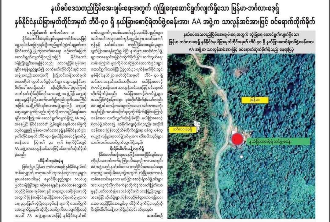 The junta-controlled Myanma Alin newspaper reported on Friday that the regime is trying to reoccupy a regime outpost near the Bangladeshi border that the Arakan Army (AA) seized on August 31.