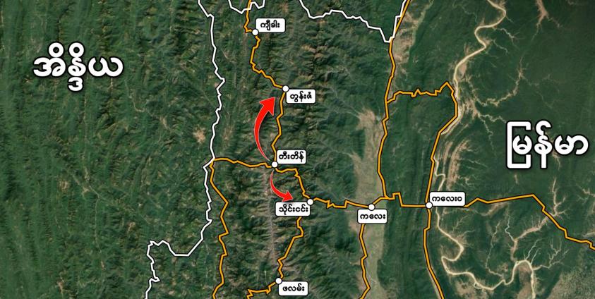 “Fighting around Taingen is happening every day now. The junta is pushing forward along the road from Taingen to Falam, and their positions in Kale (Kalay) Town in Sagaing Region are firing artillery to clear the way for their ground troops. We’re trying to slow their advance with ambushes and landmine attacks,” said Salai Diki, spokesperson for the CDF-CDM Siyin.