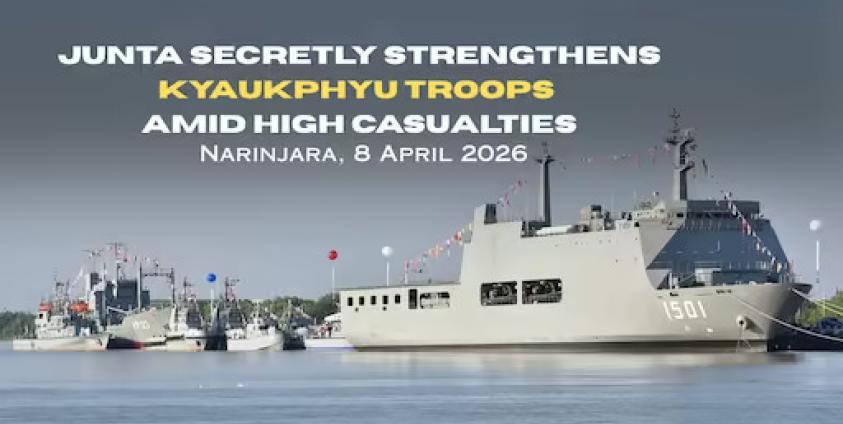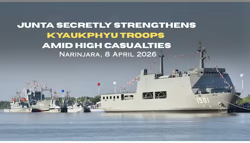 Khaing Lu Hla — Despite a temporary calm in Kyaukphyu township after the high casualties of junta forces, the Myanmar militaries are conducting secret and nighttime replenishments of weapons as well as security personnel at Danyawaddy naval headquarters, located in Thit Pote Taung area.