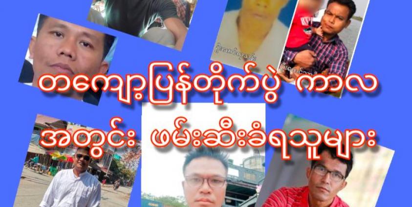 In another January 9 th case scheduled for a hearing at the Kyauk Taw Township Court, 7 people including U Saw Moe Kyaw, a recreational photographer from Minbya town, appeared in court, but the prosecutors from Military Council did not show up. The trial was adjourned until January 23, according to family members of those arrested.