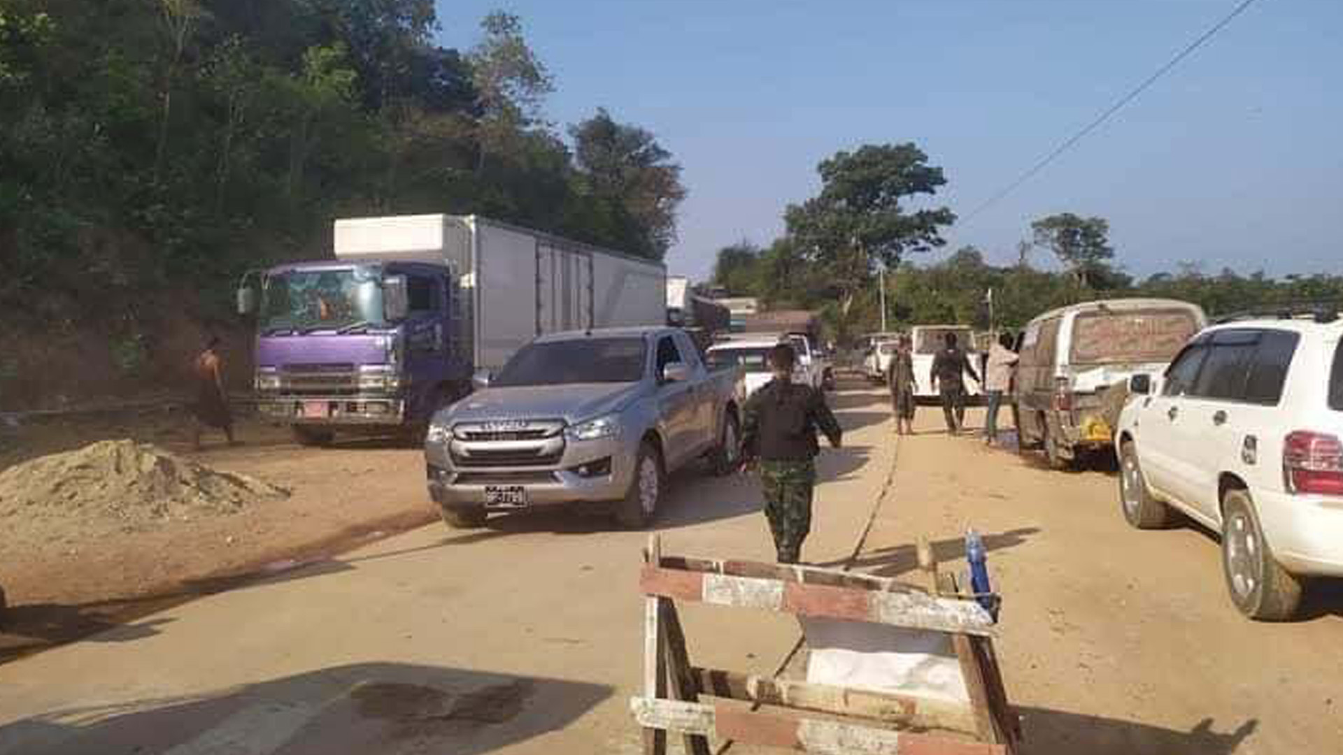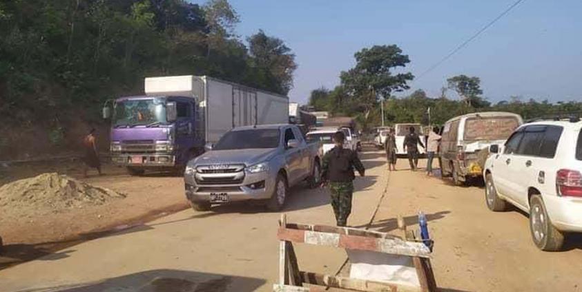 The junta's security checkpoint, established near the Gyaing River Bridge—a section of the road under junta control—has seen strict inspections of passing cargo trucks. Troops, members of the junta-aligned Border Guard Force (BGF), and other affiliated groups have been deployed to enforce these inspections.