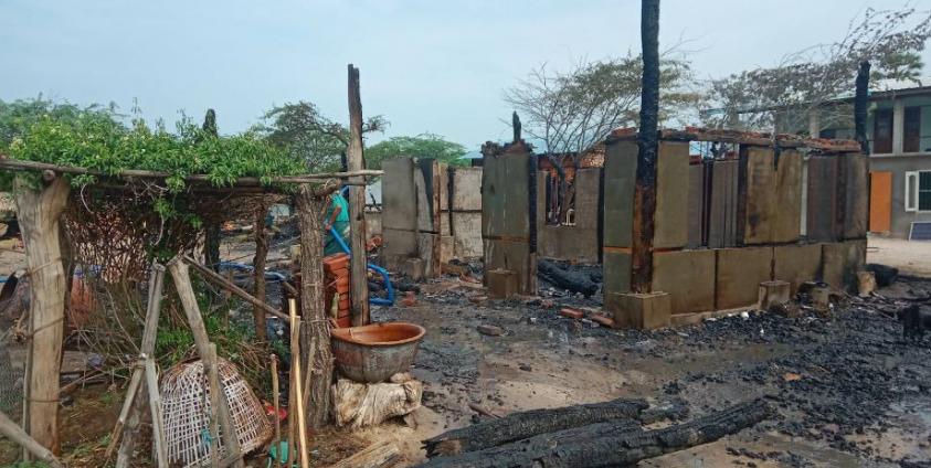 "Around 150-200 troops burned down Thayetkone village in Khin-U township. Approximately 4-5 houses were destroyed in Thayetkone, and our village also suffered with 3 houses burned. This happened on June 18th, and the military is still present between Thayetkone and Pyinhtaung, burning down one village after another," shared an Ayadaw resident.