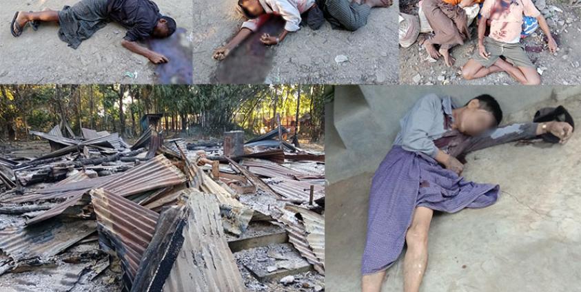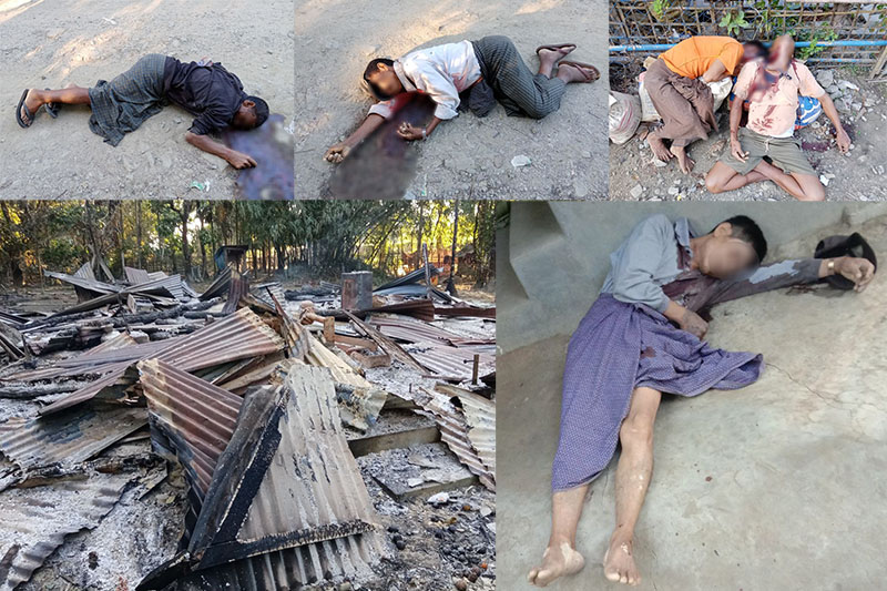 The deceased have been identified as U Khin Maung, 55; Maung Maung Thein, 41; Maung San Hla, 38; U Zan, 65; Maung Kyaw Thein, 65; Daw May Nu, 50; Daw Ma Khin Thein, 92; and U Hme Ni, 56, from Hsininngyi Village, and a 60-year-old traditional medicine practitioner from Rathedaung Township.