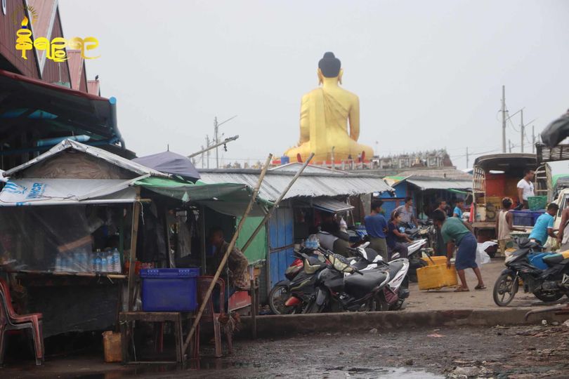 An artillery shell launched by the Junta's navy near Sittwe Point hit U Maung Maung Than warehouse according to a female vendor, around 8:30 am on February 29th. This market
