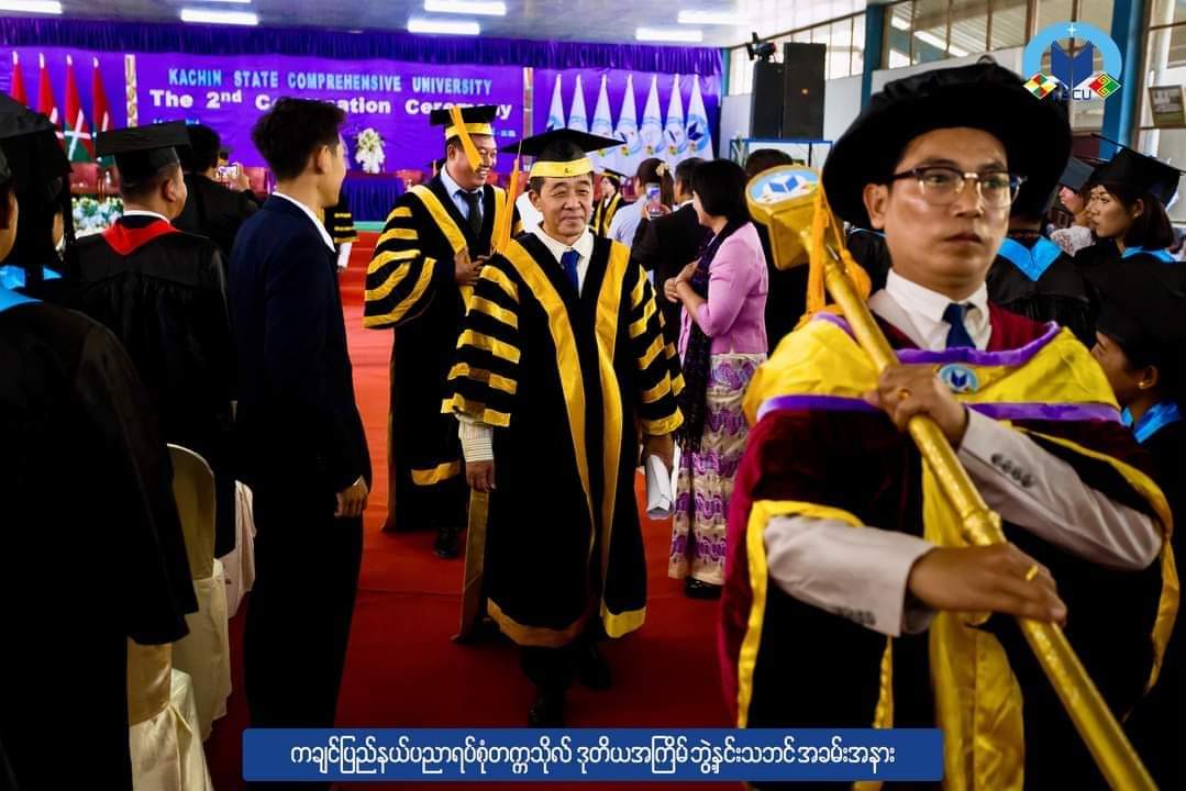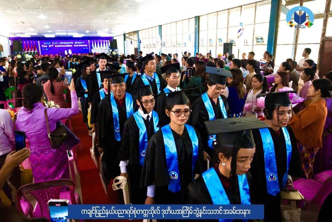 The graduation ceremony took place on March 14, with notable attendees including KSCU's chancellor, Kachin Independence Council (KIC) vice president No. 1 General Gun Maw. Also present were members of the university administration, high-ranking officials of the Kachin Independence Organization (KIO), representatives of the National Unity Government (NUG), and invited guests, as reported on KSCU's Facebook page.