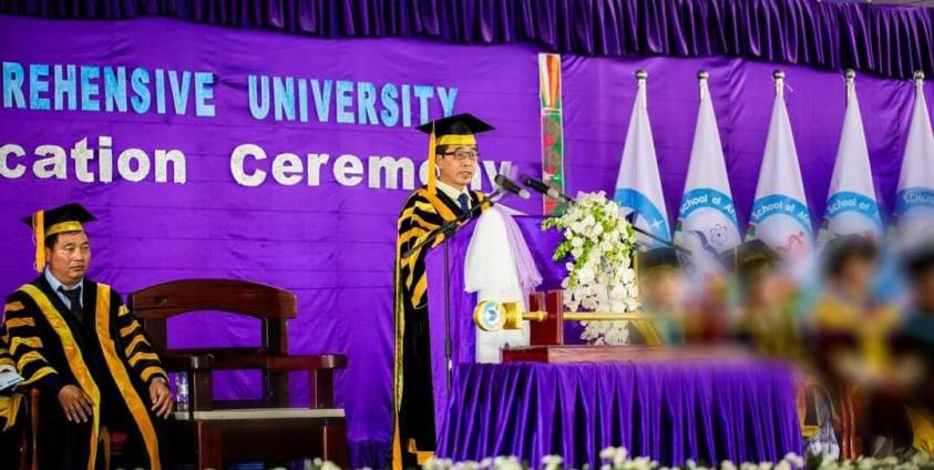 The vice chancellor of Kachin State Comprehensive University (KSCU), Doctor U Aung Naing, announced that the second graduation ceremony was successfully held in Laiza town in Kachin State, despite the tense military situation.