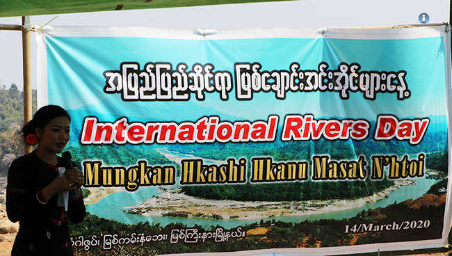 The call came on International Rivers Day, commemorated on Saturday around the world, and locally in Lon Gar Zup village in Myitkyina Township, organized by Htoi Gender and Development Foundation and attended by more than 100 people. The objective of the event was to recognize the need to maintain rivers in their natural state, oppose projects that impact water sources, and to protect people’s rights to clean and sufficient water, and for them to be able to manage this resource themselves.