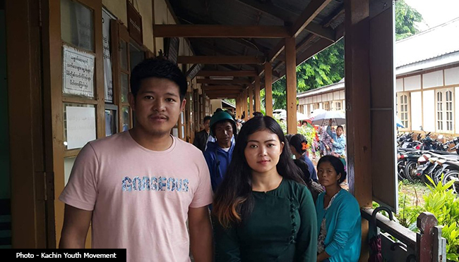 Paul Lu and Seng Nu Pan were charged on June 10 under section 19 of the law for a street performance they held in the Kachin State capital Myitkyina the previous day to highlight the plight of civilians displaced by conflict in the state.