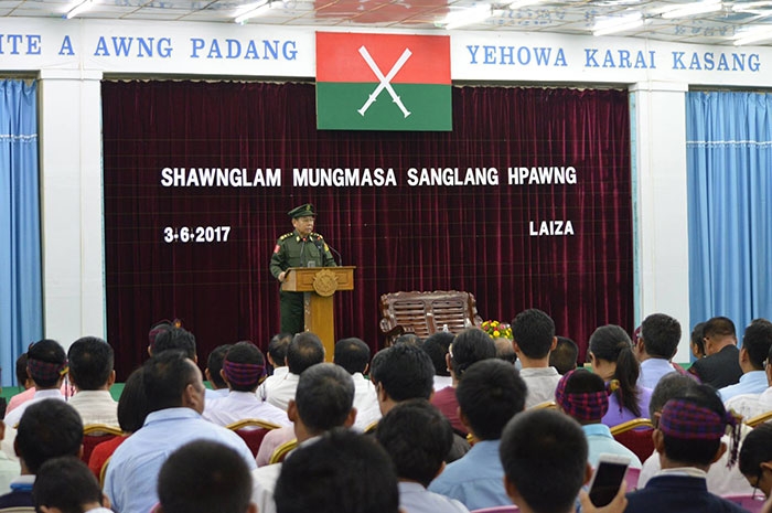 “We didn’t lose much by attending the Panglong Conference. We have even made some headway. But the mistrust and belittling of the KIO leadership has gotten very bad on Facebook,” said Gen N’Ban La, addressing a group assembled at Padang Hall in Laiza, Kachin State.