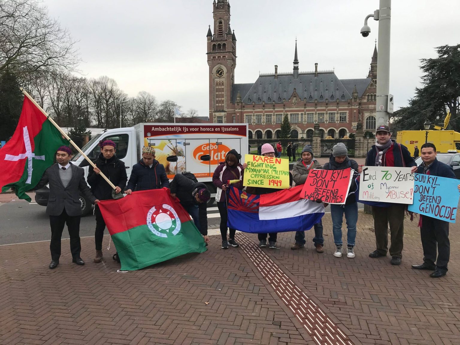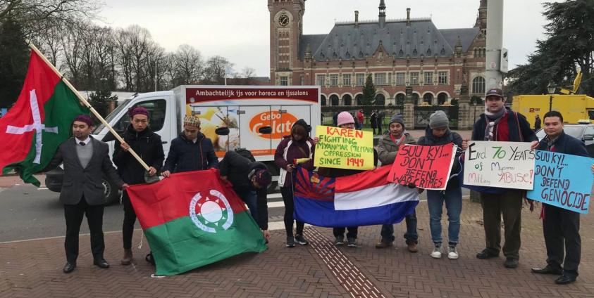 Kachin and other Burmese ethnic minorities support ICJ on genocide against Burma on Dec. 10, 2019. Photo: Hkun Htoi