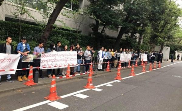Around 100 Arakanese nationals in Japan staged a demonstration against the visiting State Counsellor Daw Aung San Suu Kyi in front of the Myanmar...