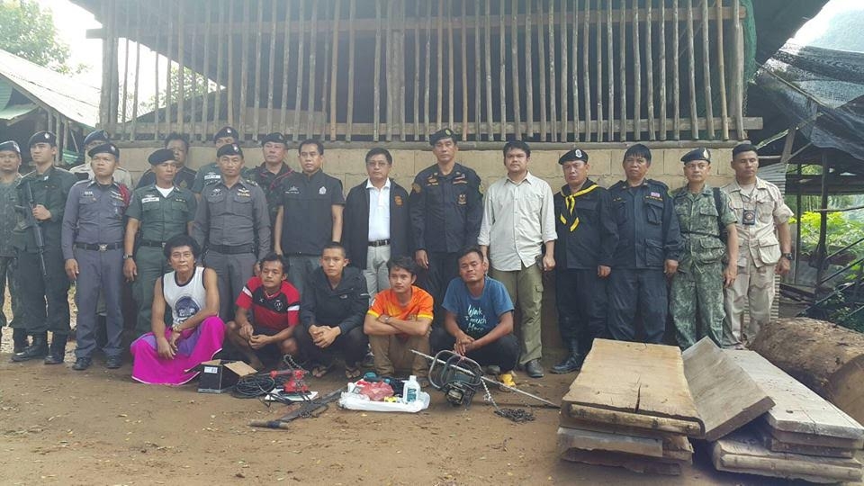 The arrested men were a pastor, his brother-in-law and three students. Two logs, some hardwood and saws were also confiscated as evidence. The arrested men were taken to Mae Ramat Police Station.