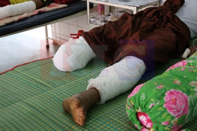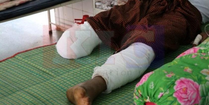 Saw Ophar Ngah was taken first to Myaing Gyi Ngu hospital, but later transferred to Hpa-an hospital where his leg was amputated.