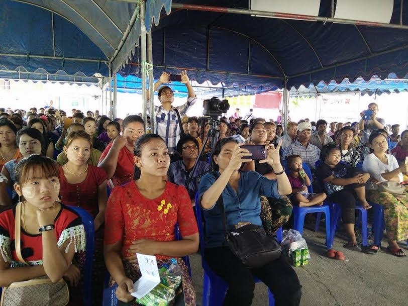 The May 1 ceremony in Mae Sot was organized by the Yaung Chi Oo Workers’ Association. Over 400 people, including workers, local authorities, NGOs and labor activists attended.
