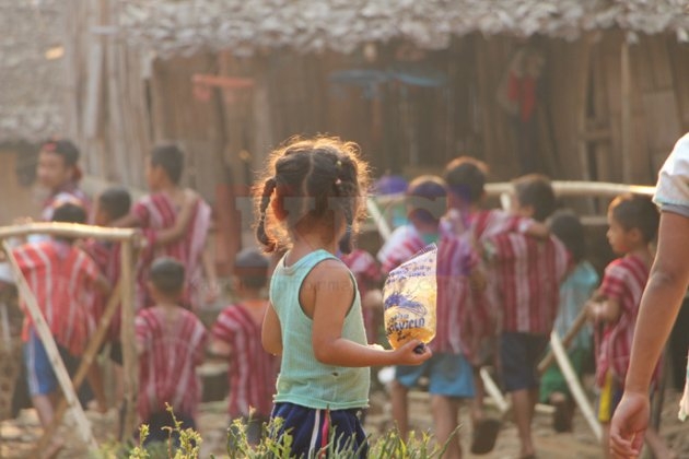At the moment, the nearly 3,000 IDPs staying at Ei Tu Hta receive only a rice subsidy. Each person under the age of 6 receives 6 kilos per month. Those above the age of 6 receive 12 kilos per month.