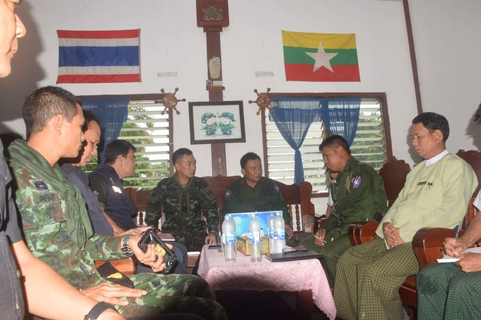 After initial objections to the construction went ignored, Myanmar closed down the border checkpoint and deployed extra border security officials. Both sides then met for negotiations, with delegations led by Colonel Myo Htut Win from the Myanmar Border Committee, and Lieutenant Colonel Direk Phonpakdi from the Thai Border Committee.