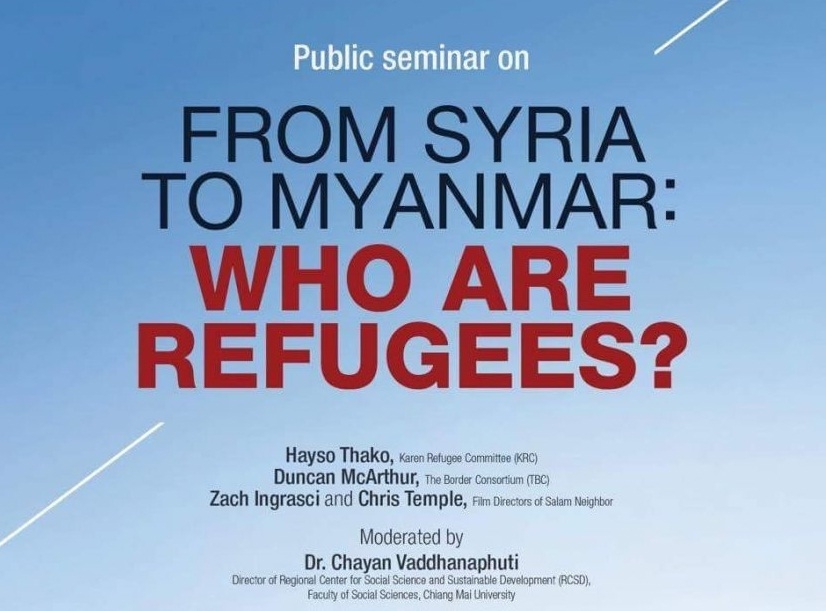 The public event, called “Syria to Myanmar: Who are Refugees?” was organized by the US Embassy in Thailand and Chiang Mai University. About 100 people attended, included members of refugee and internally displaced persons assistance groups like the Border Consortium, the Karen Refugee Committee, the Karenni Education Department and the Shan Women’s Action Network.