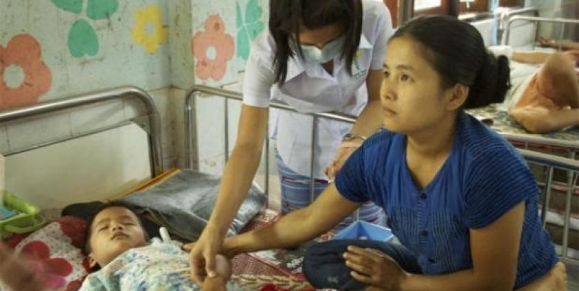 A small boy, still in street clothes, lies on a bed in the busy Child Inpatient Department at the Mae Tao Clinic in the Thai border town of Mae Sot. He wavers between an uneasy wakefulness and unconsciousness, too weak to acknowledge the anxious hand strokes his mother gives his thin body.
