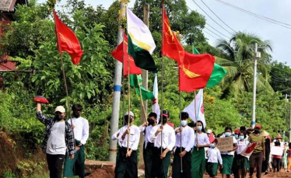 Eight students were arrested by the junta’s contingent of 100 police and military who raided at a house in Zeyarmyaing, Mawlamyine Township in Mon...