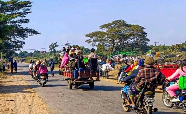 Following the junta's aerial attack on MyoMa Market and surrounding wards in Kutkai town, northern Shan State, residents are fleeing to safer areas...