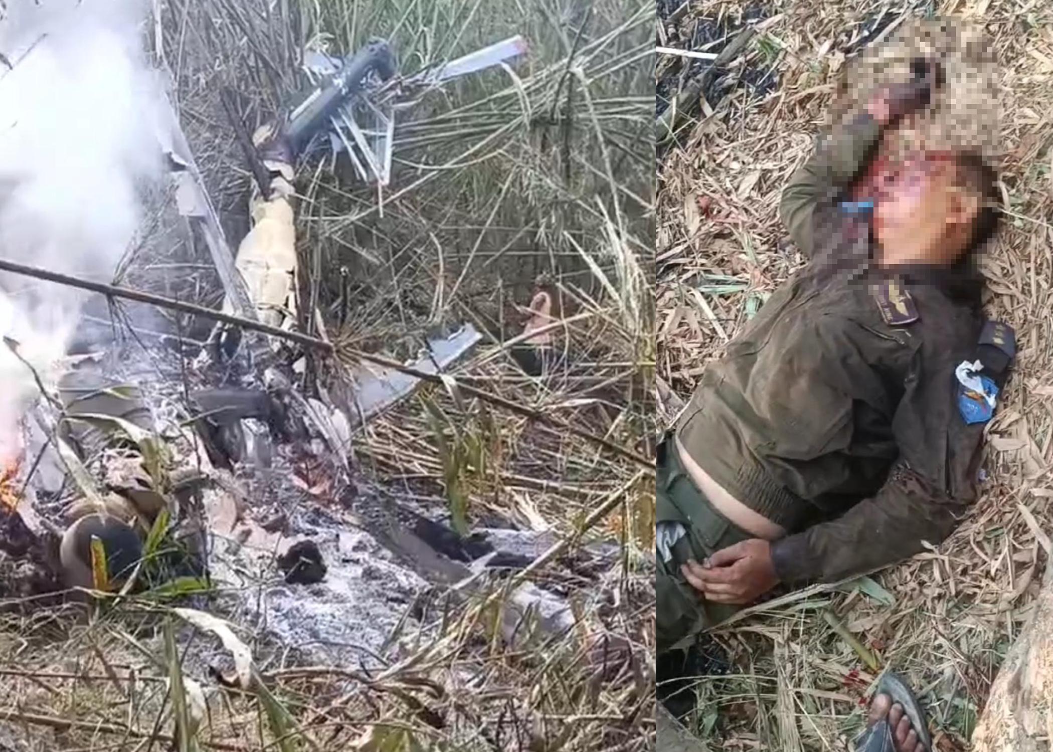 A Kachin Independence Army (KIA)-led coalition has found the wreckage of a junta helicopter that crashed and burst into flames after being damaged by coalition gunfire on 20 May 2025.