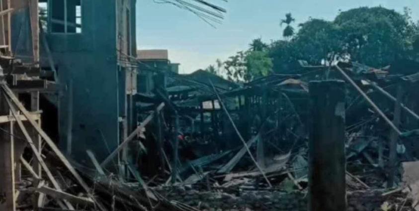 "In the vicinity of the police station houses suffered extensive fire damage, primarily due to airstrikes. The majority of the affected houses were completely destroyed. The total count may exceed 50; it could be even more, but an exact figure is uncertain at this point”, a Khampat resident said.