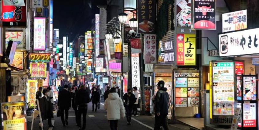 Caption; Pedestrians walk on a street in the Shinjuku area of Tokyo on Tuesday. | AFP-JIJI