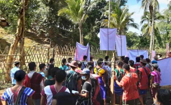 More than 1,500 villagers from Ku Thu Hta village tract gathered for a peaceful protest on July 22 following the murder of a Karen woman by two Burma...