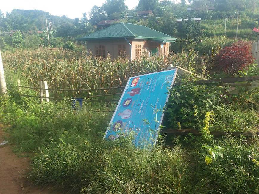 A KySDP and KNP party sign was destroyed three days ago in Hsaung Du Village, Lobakho Village Tract, west of Demawso Township, Kayah State.