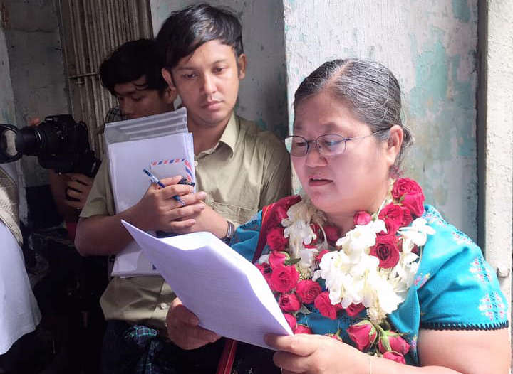 Naw Ohn Hla has been temporarily detained at Inn Sein prison and appeared in Kyauktada Township court on Friday. More than 300 Karen people assembled in the area. There will be a trial on October 2nd.