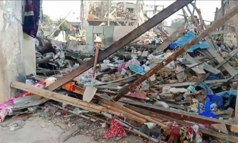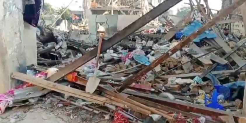 The airstrike destroyed five houses and caused damage to the Chinese Baptist church and several stalls in the nearby Yaehtwetoo Park Market.