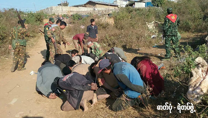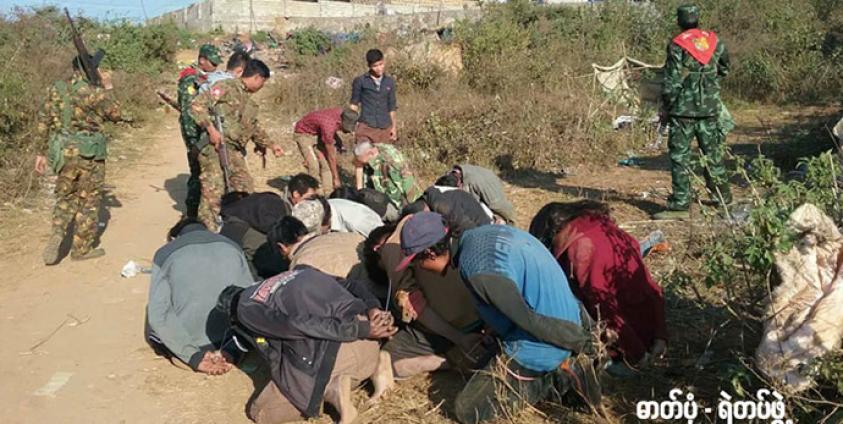 Local authorities arrested drug users in Mong Yu Village, near Muse Township, 105 Mile, northern Shan State.