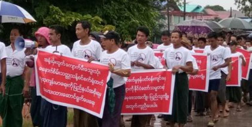 Over 200 residents of Mawlamyine Industrial Zone protested on Sunday (July 22) morning to demand the closure of coal-powered antimony refinery plants that emit foul odor in the industrial zone.