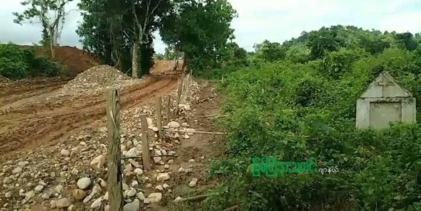 Villagers are anxioused about the damages of the burial site due to the construction of a road for gold mining near the Lon Ton village cemetery in Ma Mon Kai village tract.
