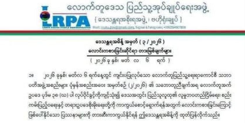 The LRPA warned that those who violate the ban may face a fine of up to 100,000 MMK, imprisonment in accordance with the law, or both.