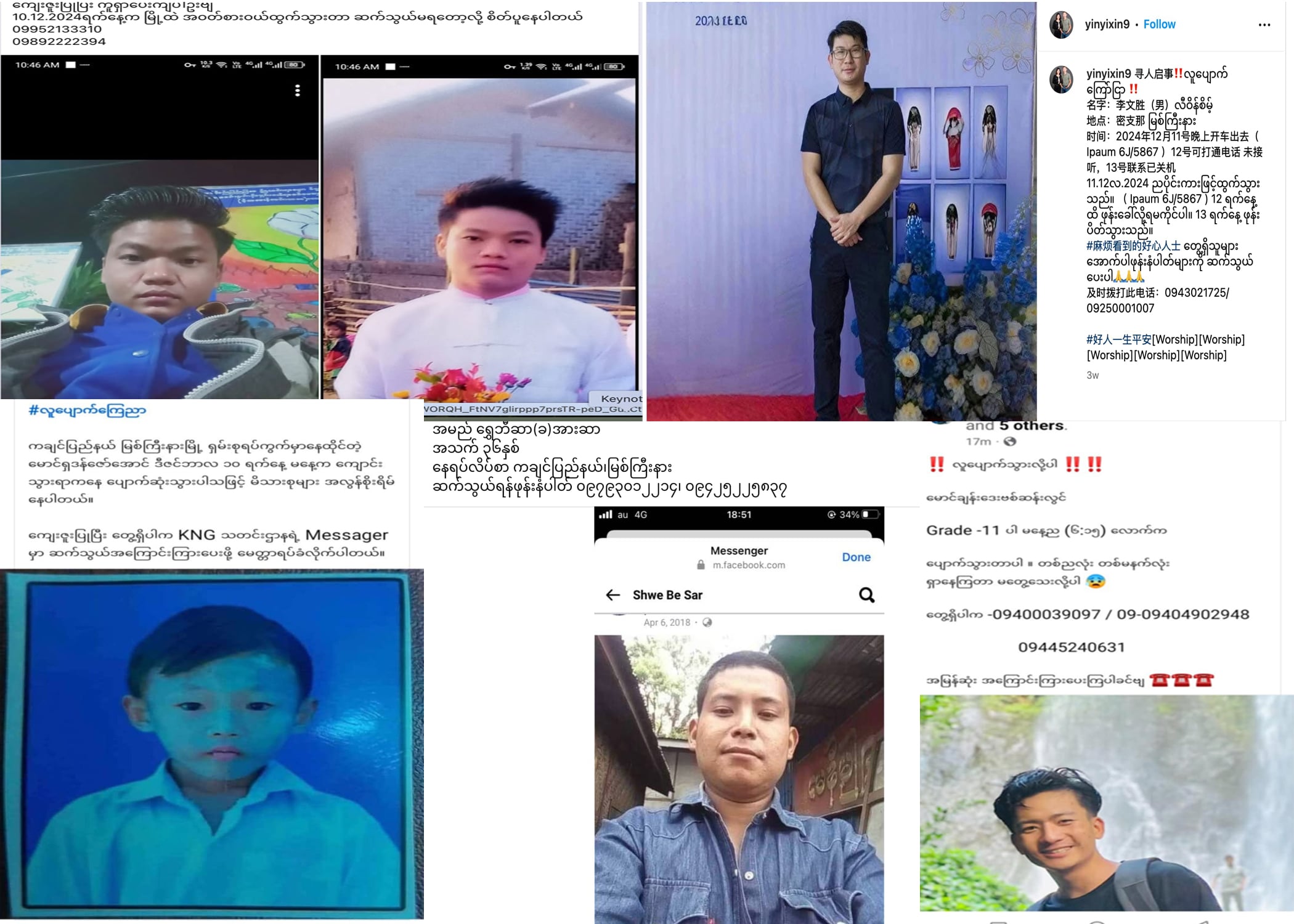 Ko Chan David San Lwin, a 17-year-old youth from Shansu (North) Ward in Myitkyina City, is also missing, according to missing person posts shared in Facebook groups related to the city.