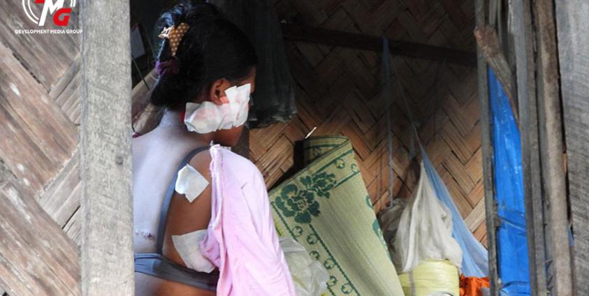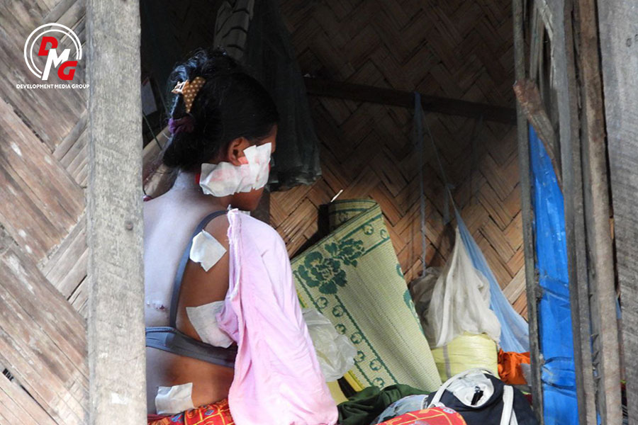 Manu Sora, a 14-year-old Muslim girl, sustained severe injuries to her arms, back and chest when a junta aircraft attacked Maung Ni Village in Maungdaw Township on August 2. Four months later, she still has not received proper medical treatment due to financial difficulties.