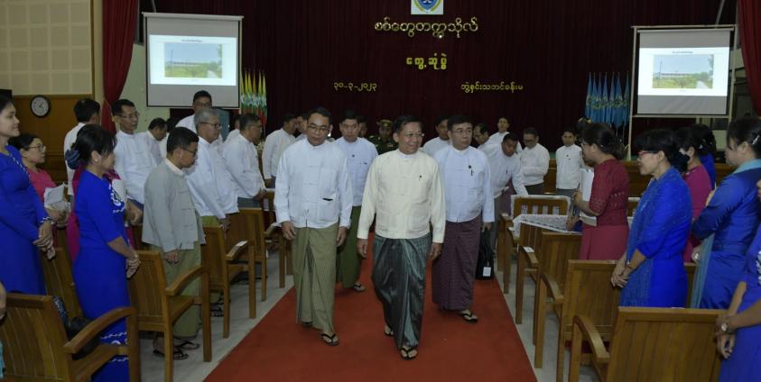 The military council team visited Sittwe to present a new umbrella crown to Lawka Nanda pagoda there. The team also visited other places including Sittwe Kandawgyi lake and Point resort.
