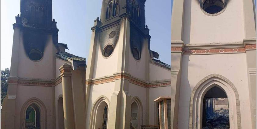 The large Catholic church, burned by the Military Council troops, was built by the Mandalay Catholic Church in 1894 and is recorded as the oldest church in the entire Sagaing Division.