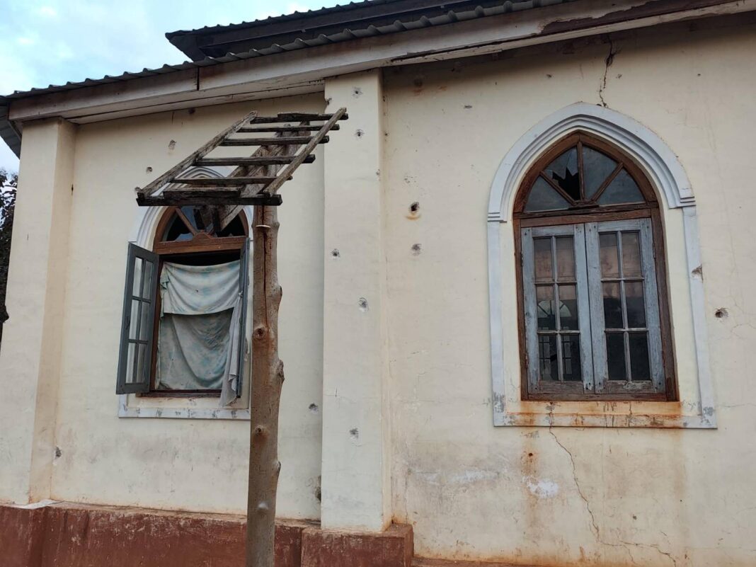 After the military junta fired drones and heavy weapons near a village in Demoso Township, Karenni State, on January 14, a church was damaged, according to a male local resident.