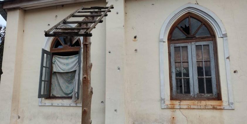 “They fired heavy weapons. Before the artillery, drones came first and dropped bombs in the afternoon. In the evening, they shelled the area. Fortunately, there were no civilian casualties, but one of the shells landed inside a church, and it damaged parts of its walls and window mirrors,” he said.