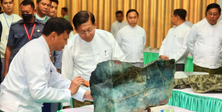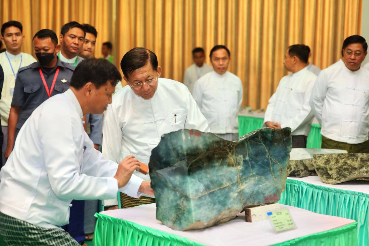 The exhibition has private jewelry showrooms, and jade stones excavated from Metlinchaung joint venture-2 in Lonkhin/Phakant gems land and lots of uncut jade stones are also on display outside the hall, according to the junta propaganda newspaper.