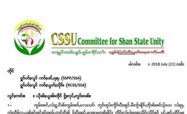 The Committee for Shan State Unity (CSSU) chair Sai Aik Pao urged the two leaders of the Shan State Army to cooperate in solving the difficulties the...