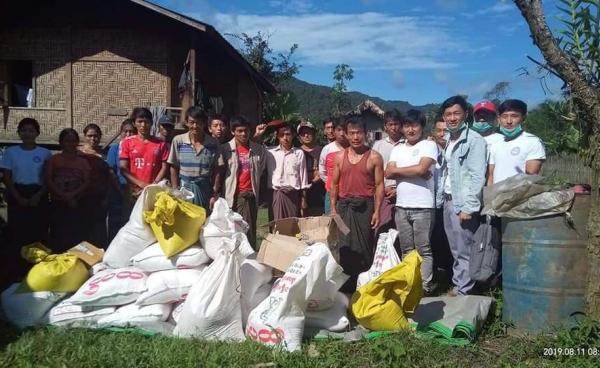 A youth group provides food to some 20 households displaced by flooding in Puta-O since mid-July, who have not received international aid. An ethnic...