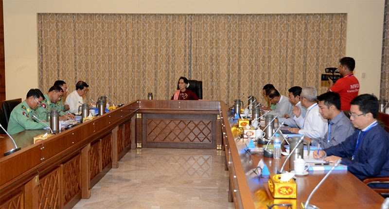 State Counsellor Daw Aung San Suu Kyi chairs the coordination meeting on the formation of the National Reconciliation and Peace Centre (NRPC). Photo: MNA