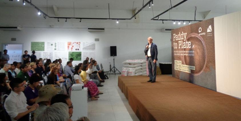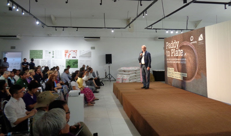 The launch was held at the Yangon Gallery in People’s Park and included a panel discussion featuring three rice experts, including Dr Duncan Bowden from Michigan State University. He presented a brief comparative analysis of Myanmar’s rice sector.